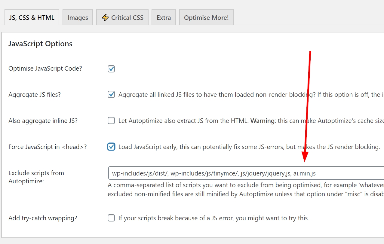 - If you are aggregating the JS files, you may need to exclude the script “ai.min.js” from optimization to prevent possible conflicts.