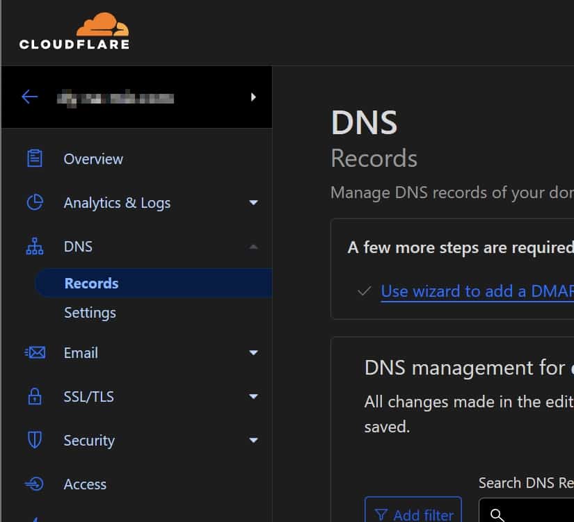 Select your website and then the DNS section from the side menu.