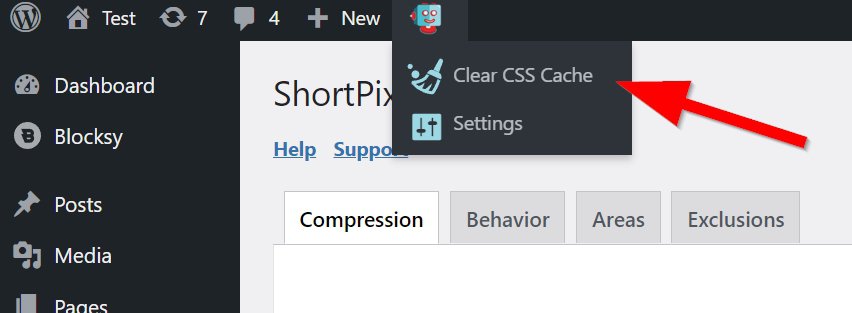 Clear the CSS cache from the WordPress Toolbar (only relevant if you have enabled the "Replace in CSS files" option in ShortPixel AI's settings):