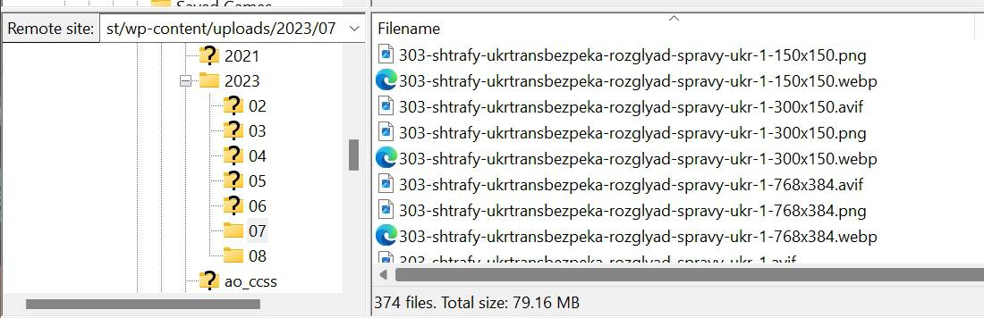 Navigate to the path where your WebP/AVIF files are located. This is usually /wp-content/uploads/YYYY/MM, where