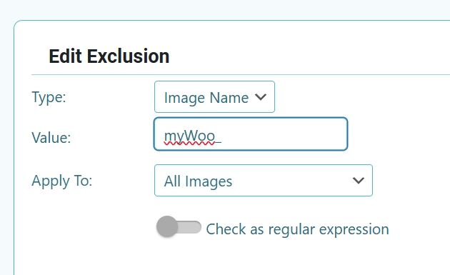 myWoo_), you could use the Exclude patterns setting located on Settings > ShortPixel > Exclusions (you need to have the Advanced Mode enabled to be able to access this menu). Following the previous example, you would have to inputmyWoo_into that settings field. The downside is that these excluded images won’t be optimized at all.
