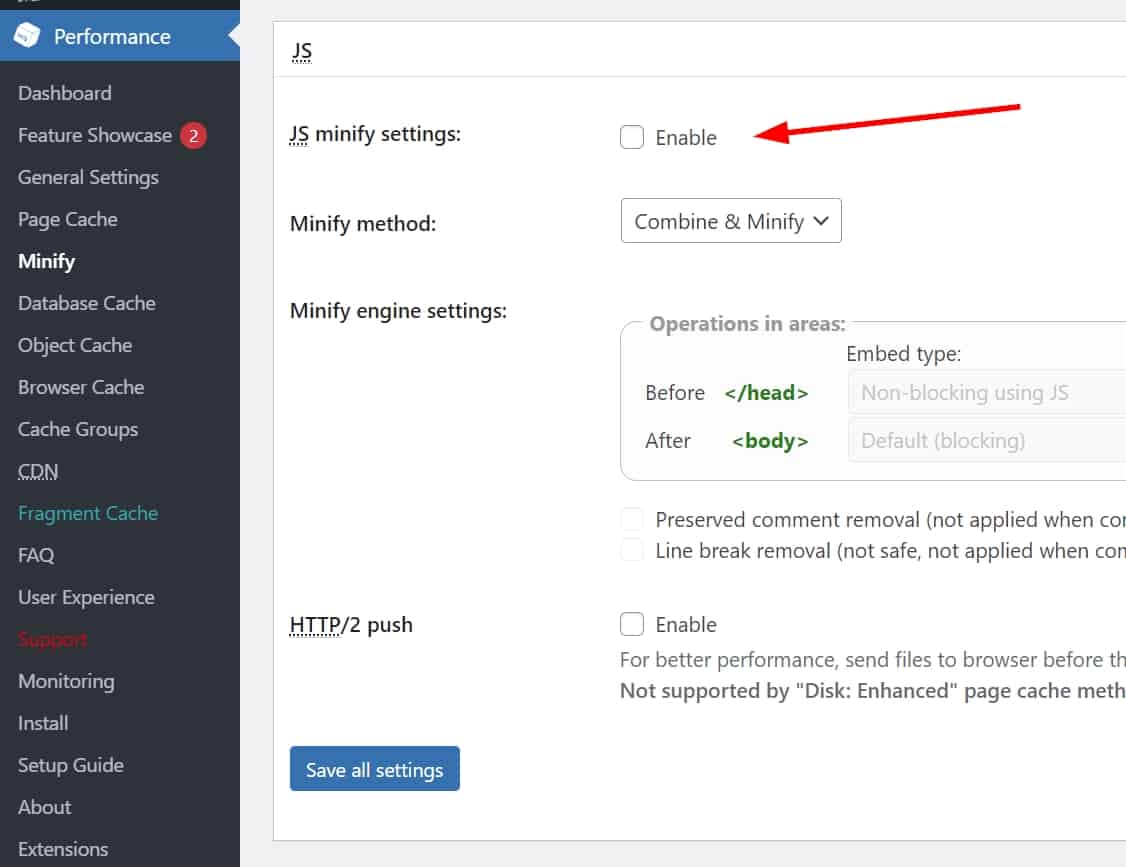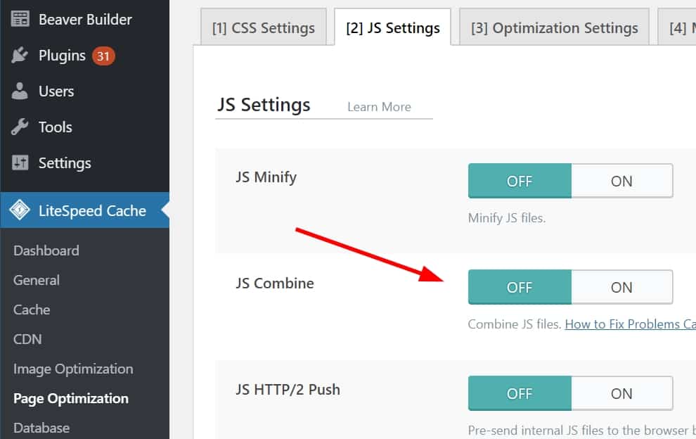 Finally, make sure the "Combine JavaScript Files" setting is disabled.