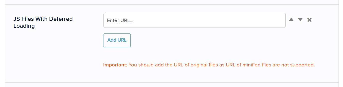 Be careful with the "JS Files With Deferred Loading" option. We have seen websites where adding certain files caused our plugin to not work properly. If you experience random issues, first try to remove all files from there.