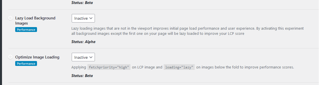 - Set the 'Lazy Load Background Images' setting to Inactive via Elementor > Settings > Features.