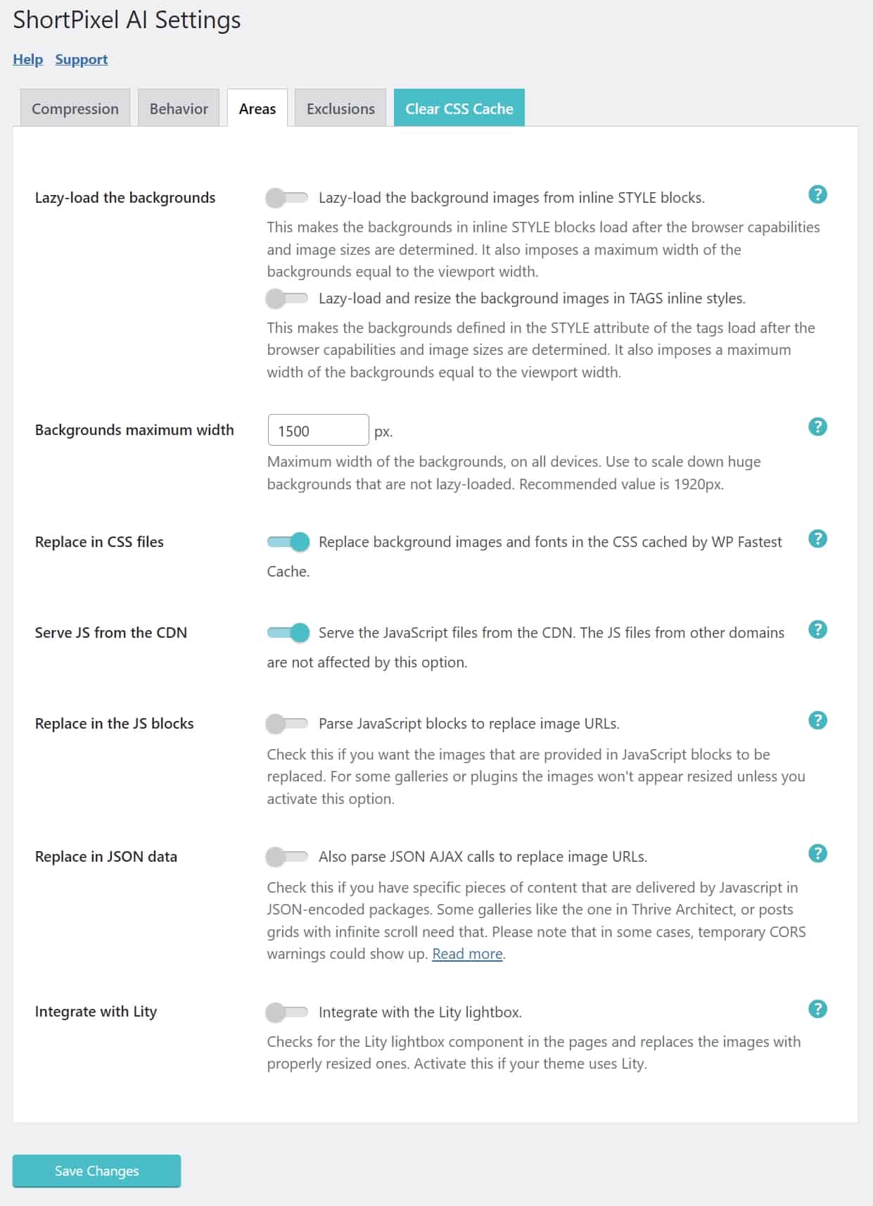 ShortPixel Adaptive Images settings – Areas