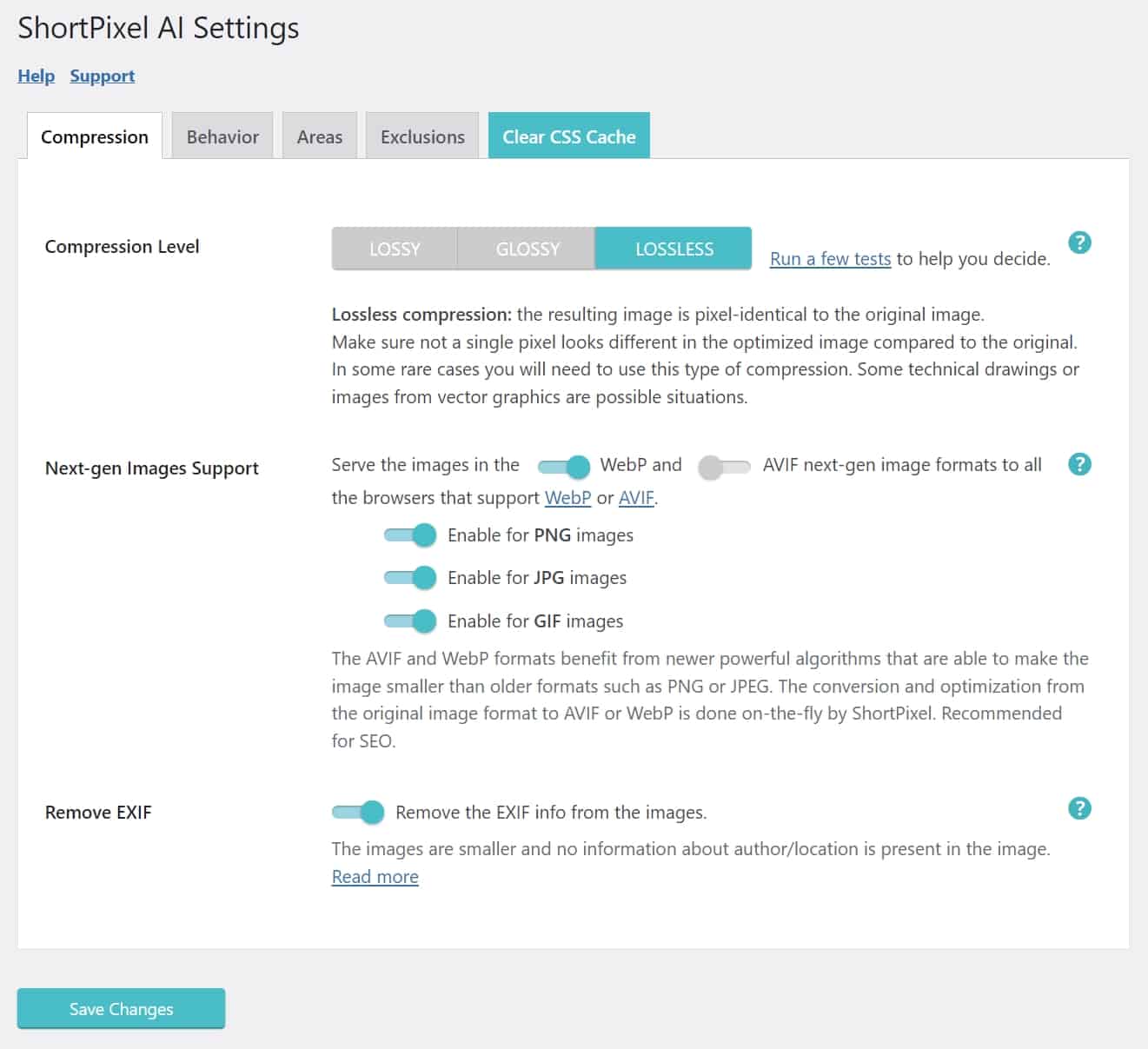 ShortPixel Adaptive Images settings – Compression