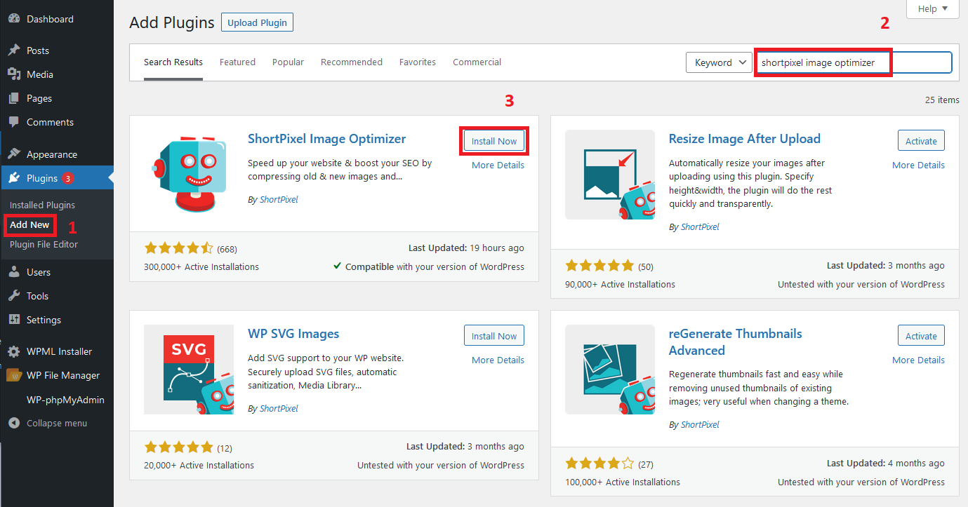 There are 3 ways you can install ShortPixel Image Optimizer (SPIO), and they are the same as with every other plugin.