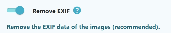 Please note that the ICC (Color Profile) data will never be removed regardless of the “Remove EXIF” setting value. The reason behind this is that removing the ICC color profile could lead to images with altered colors.