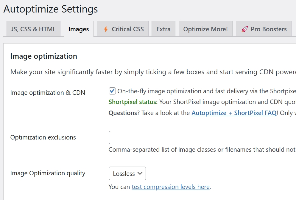- Go to Settings > Autoptimize > Images and set the “Image Optimization quality” to “Lossless”.