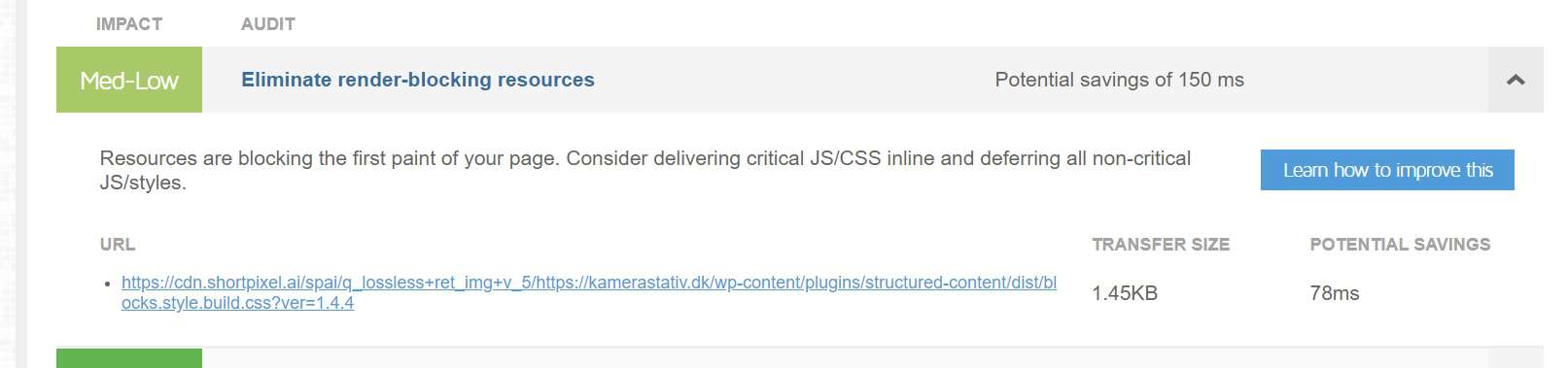 Have you ever used GTmetrix or PageSpeed Insights, and you got the message “Eliminate render-blocking resources” with some URLs pointing to cdn.shortpixel.ai?