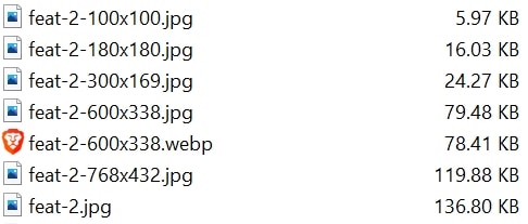 Converting your JPG, PNG or GIF image to WebP or AVIF is a very simple task with our ShortPixel Image Optimizer plugin. However, you may find that not all of your images or thumbnails are converted to WebP or AVIF. For example, in the screenshot below you can see that only the 600×338 thumbnail has a WebP counterpart: