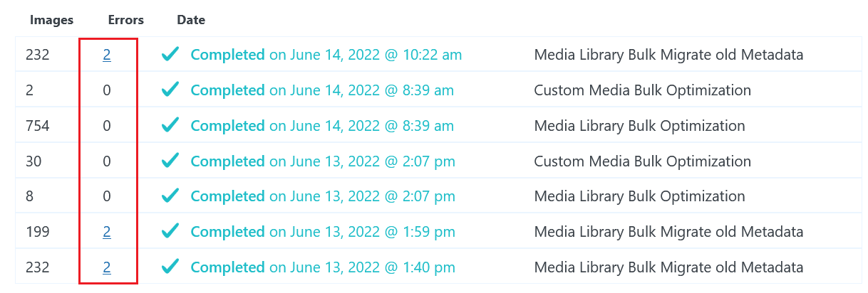 You will find the number of errors after each bulk optimization on the Bulk ShortPixel screen: